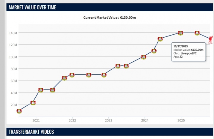 袭击型中场维尔茨带着极高期许加盟利物浦。这位德国球员的运转转会费高达1.25亿欧元,创下那时英超联赛的转会费记载,但他的开局并不成功。在英格兰顶级联赛和欧冠联赛的前九场比赛中,他尚未得回进球或助攻。他的阛阓估值从1.4亿欧元降至1.3亿欧元。