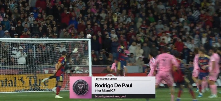 4月23日讯 官方消息,德保罗当选迈阿密国际2-0皇家盐湖城全场最佳球员。