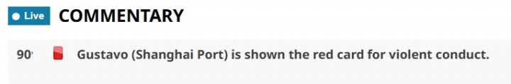 亚足联官网对这次事件的描画为:古斯塔沃(上海海港)因暴力步履被红牌罚下。