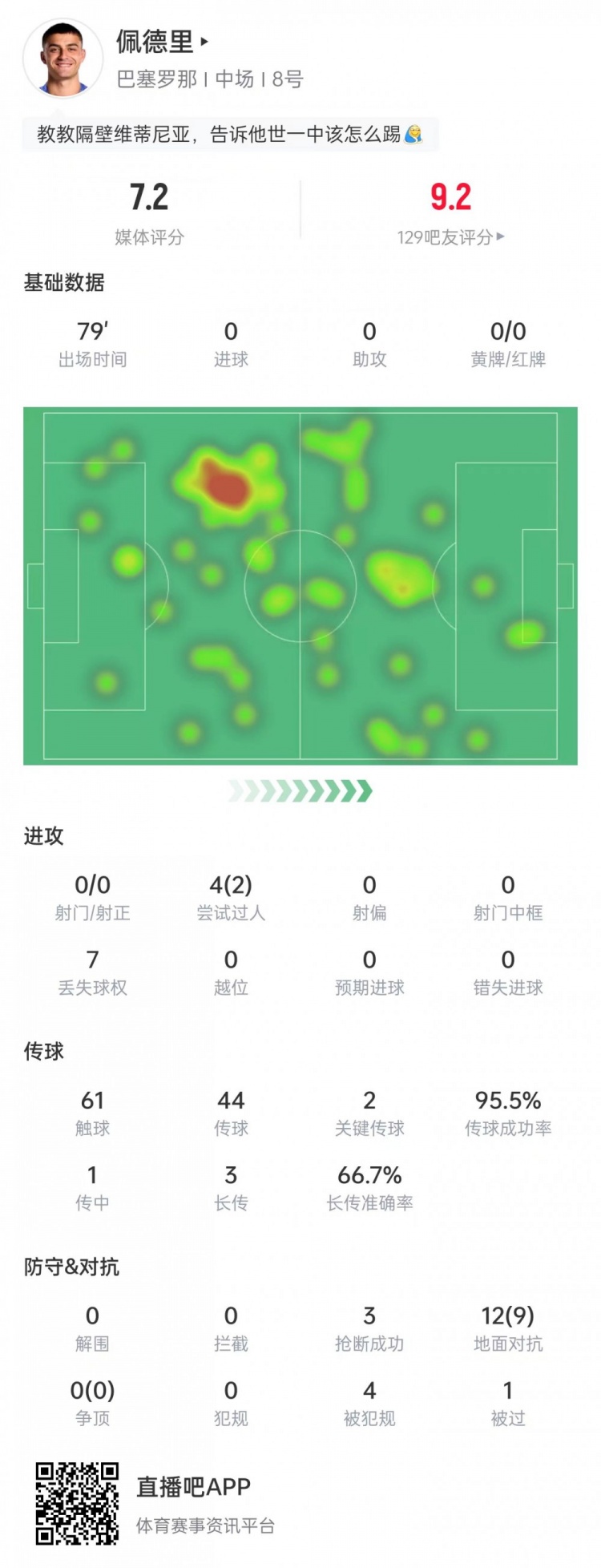 佩德里本场比赛数据