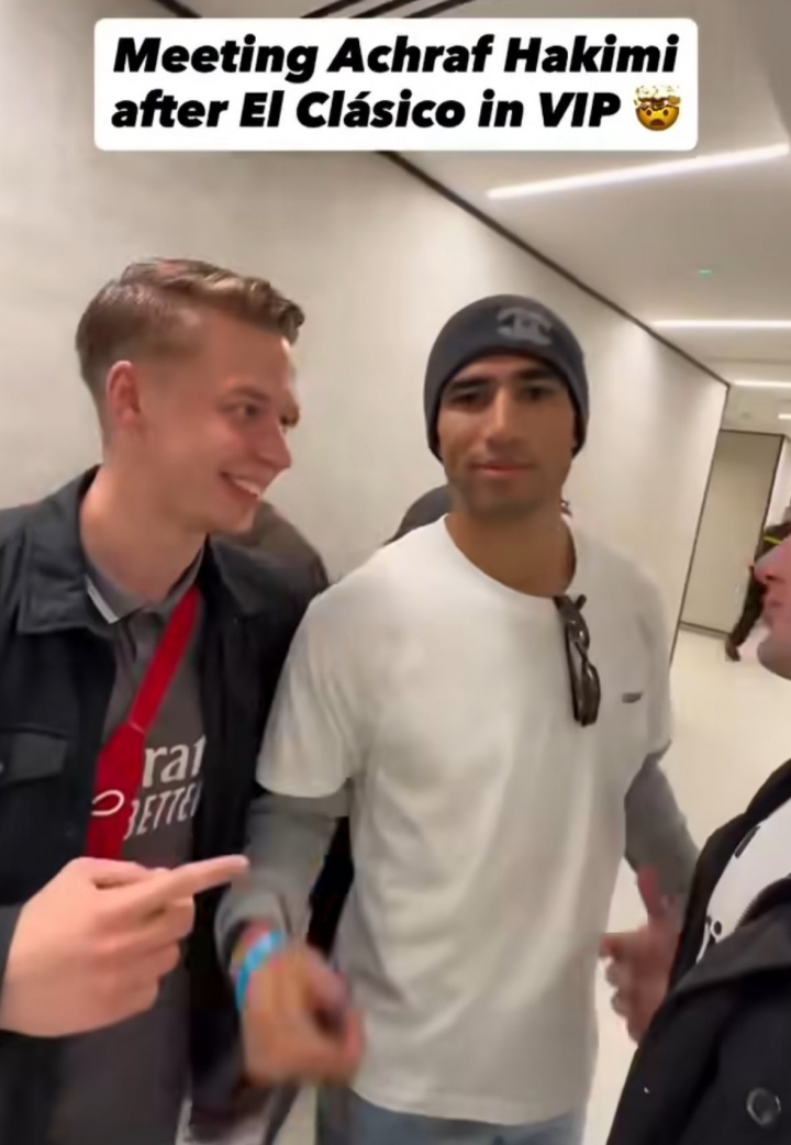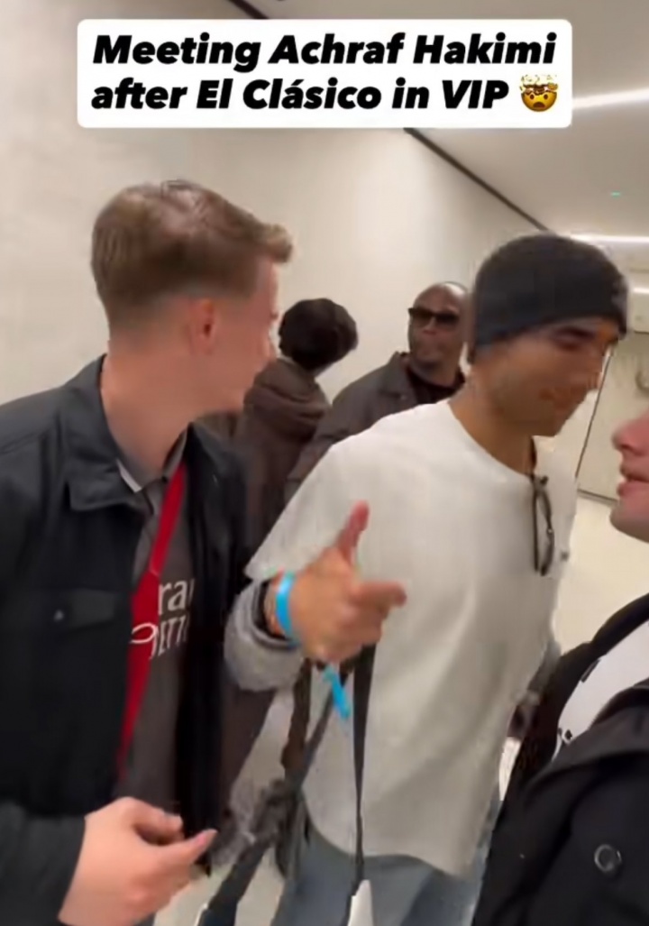 赛后有球迷晒照,称我方在伯纳乌的VIP包厢偶遇阿什拉夫,并合影眷顾。