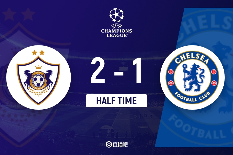 上半场伤停补时3分钟,半场罢了,切尔西暂1-2卡拉巴赫。
