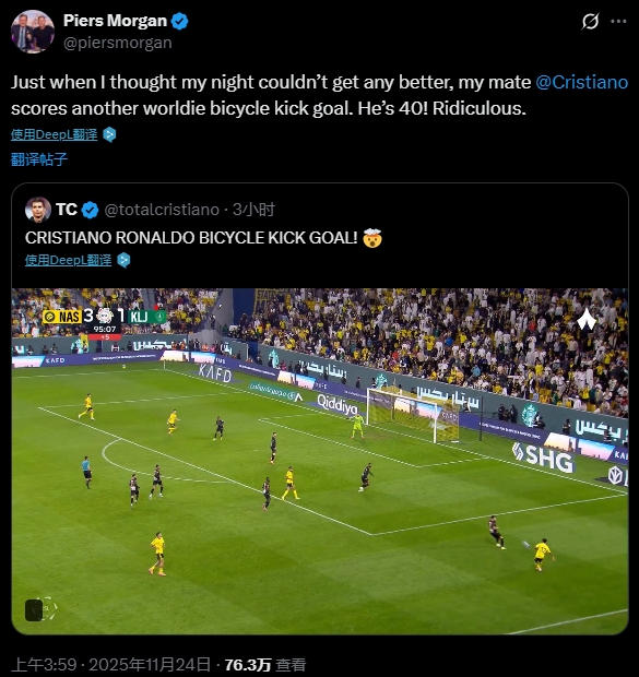英国著名主握东谈主、阿森纳球迷摩根更新社媒动态:正派我以为今晚仍是再无惊喜时,我的兄弟@C罗又踢进一记全国级的倒钩球。他齐40岁了!几乎不能想议。