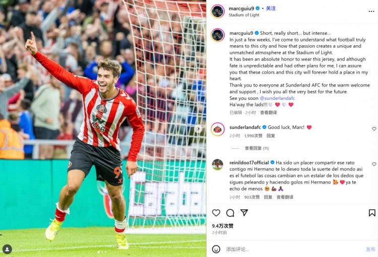 感谢桑德兰扫数东说念主的良善接待与相沿,祝福你们畴前一切奏凯。