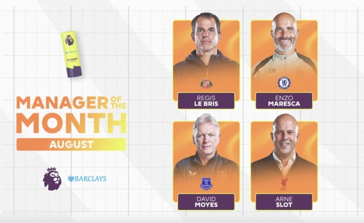 8月最好主帅将不竭由球迷投票,当地时候9月12日揭晓最终获奖者。