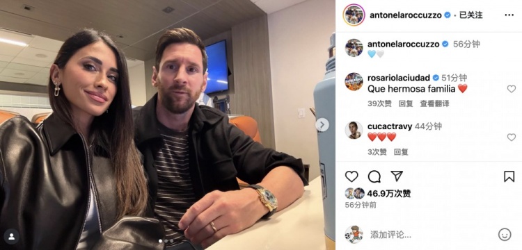 赛后,安东内拉更新外交媒体晒出与梅西和男儿的自拍照,并配上神采:🩵🤍