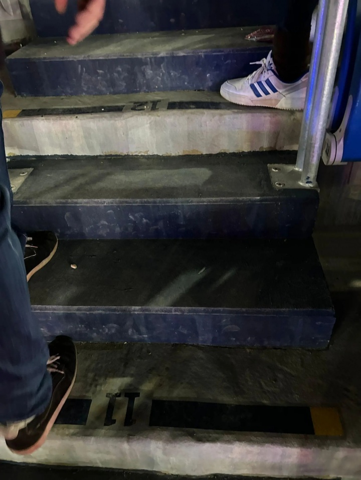 巴萨球迷防御到的另一个问题是“进口处的台阶格外不屈整 ”,如下图所示。乍一看,有些台阶的宽度和间距似乎不相似,不外这些问题齐不错处分。