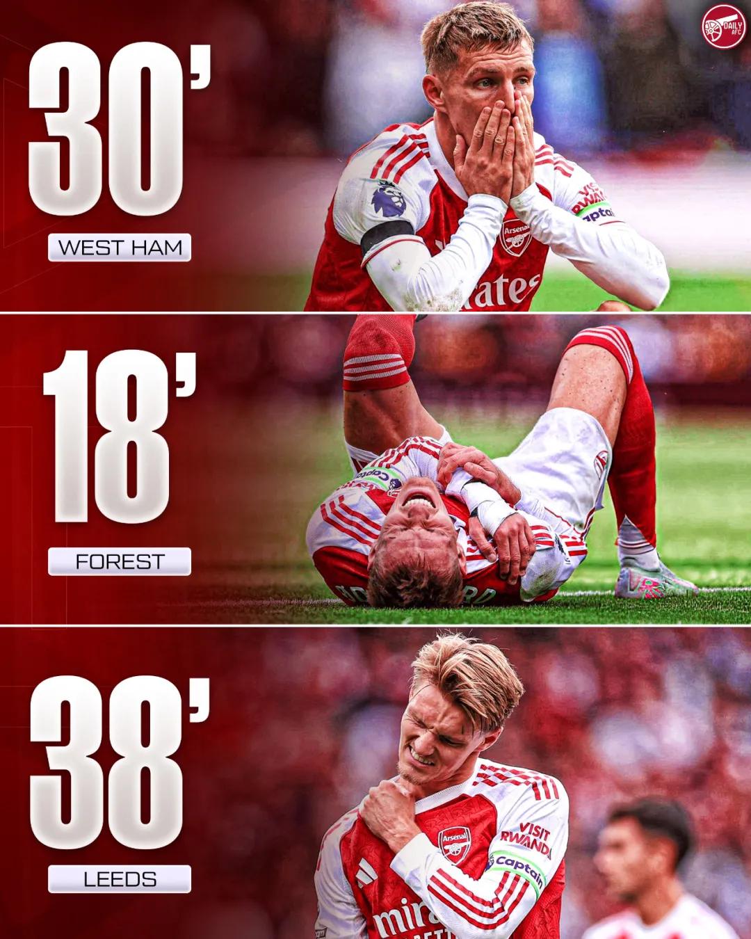 Opta统计,厄德高成为了英超历史上第一位相接3场英超比赛首发出场但却在半场之前被替换下场的球员……
