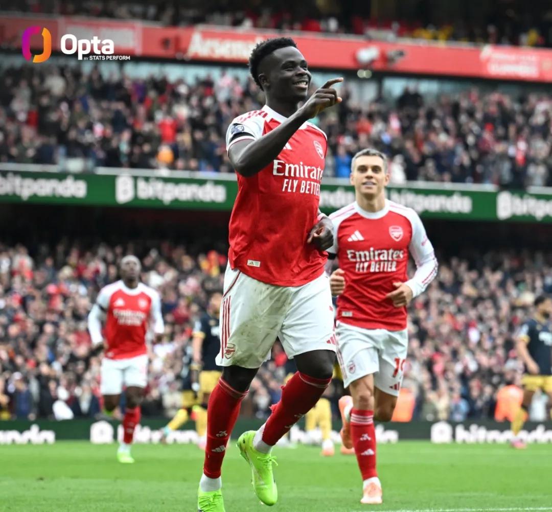 此外这场比赛亦然萨卡出战的第200场英超比赛。