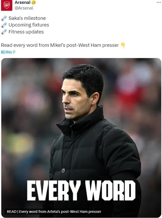 阿尔特塔出席了赛后新闻发布会,咱们来看阿森纳主帅的发言。