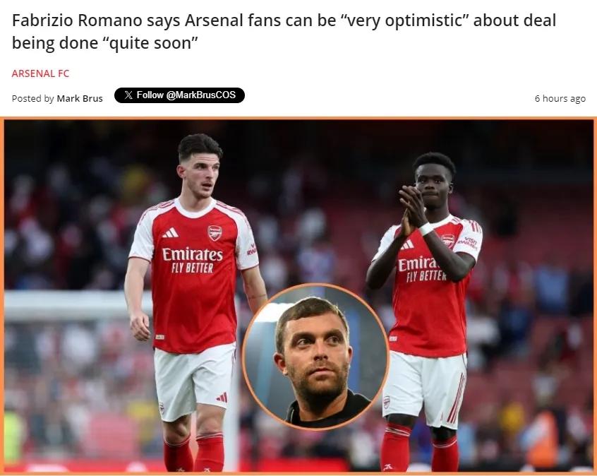 罗马诺在YouTube中深切,阿森纳续约萨卡仅仅手艺问题。