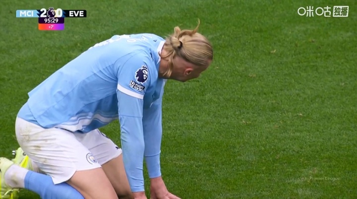 比赛伤停补时阶段,哈兰德三次得到单刀契机,但三次契机全没把捏住!错过帽子戏法!