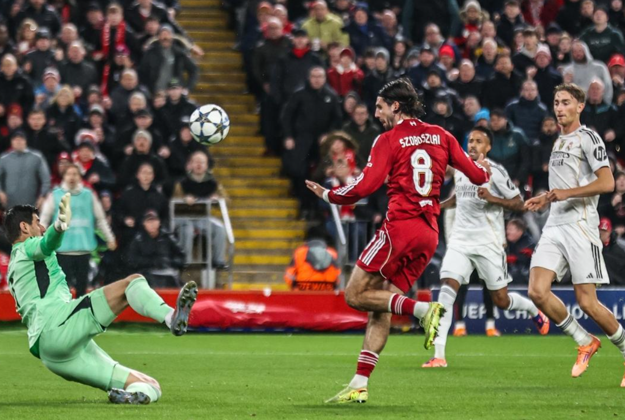 下半场易边再战。第47分钟,范戴克近距离头球攻门被库尔图瓦神扑化解。5分钟后,索博斯洛伊浪漫球射门也被门将扑出。第61分钟,利物浦进球了!索博斯洛伊开出浪漫球,麦卡利斯特头球顶进!皇马轰然倒下!第75分钟,姆巴佩远射被挡了出去。最终,利物浦1-0打败皇马。皇马6连胜就此完了。姆巴佩低迷,透彻哑火。