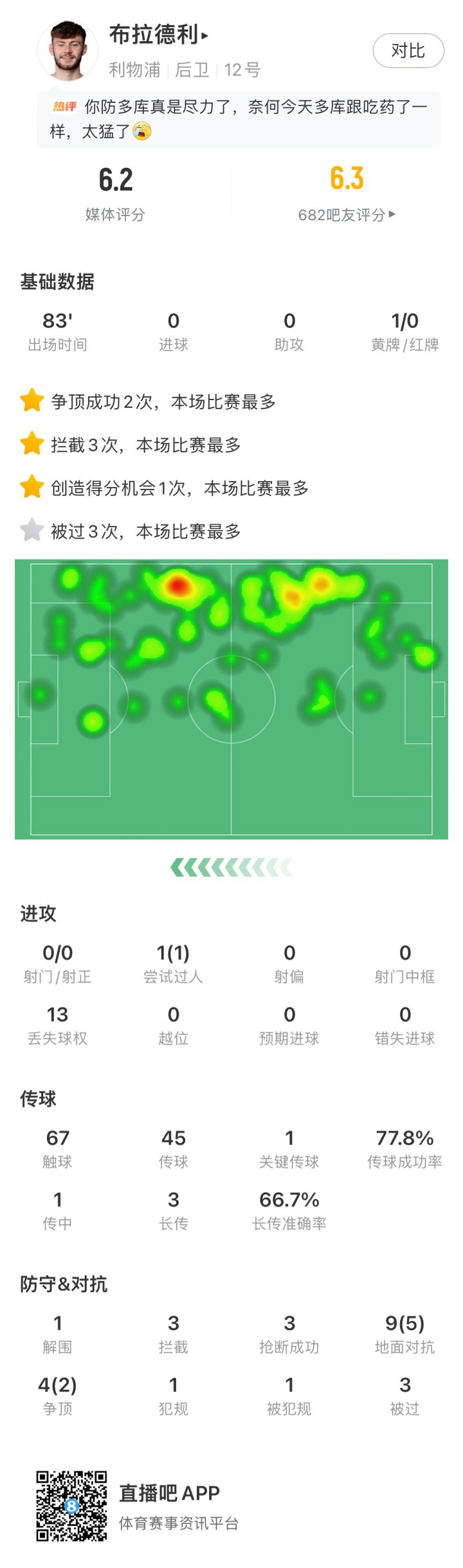 在周中进行的欧冠比赛中,布拉德利靠近皇马阐发果敢,得手完毕住了“世一左”维尼修斯。