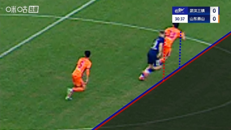 11月22日讯 中超第30轮,武汉三镇主场对阵山东泰山,比赛第30分钟,图多列接长传直入禁区抢射破门,裁判经VAR证据判越位。