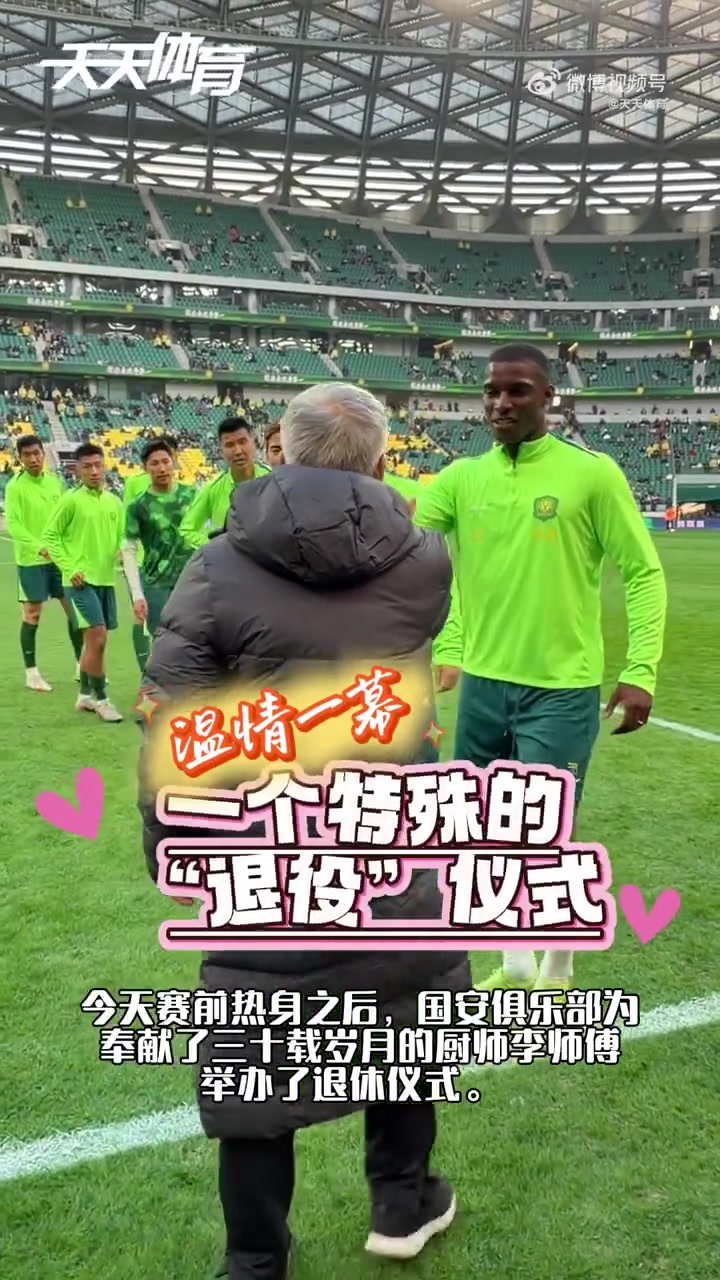 11月22日讯 中超收官战,北京国安主场对阵梅州客家。赛前热死后,国安俱乐部举行了一个非凡的“退役”庆典。