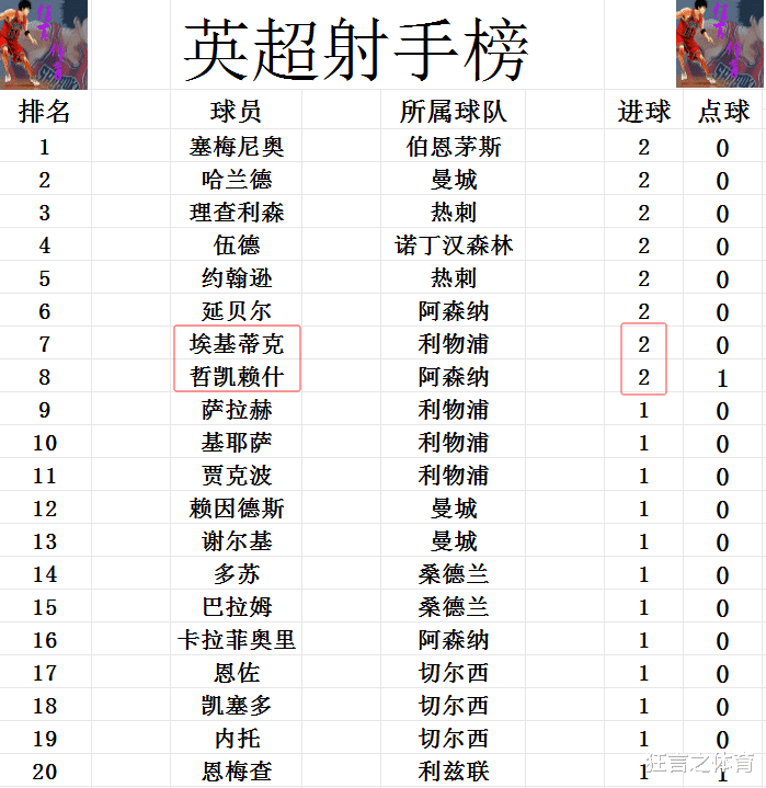 弓手榜方面,埃基蒂克连场破门,追上哈兰德,理查利森,塞梅尼奥,伍德,约翰逊,延贝尔,哲凯赖什等东说念主2球比肩榜首。萨拉赫今天未能进球,一经和赖因德斯,恩佐,凯塞多,贾克波等东说念主1球上榜。