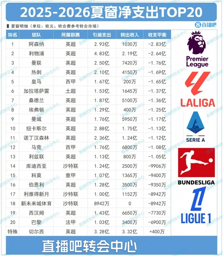 五大联赛夏窗赶走!咱们全部来总结~