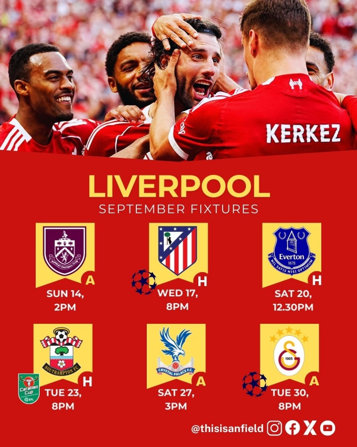 09月11日讯 海外比赛日一经死心,戮力的9月下半月行将开启,赤军利物浦将面对相干一周双赛。